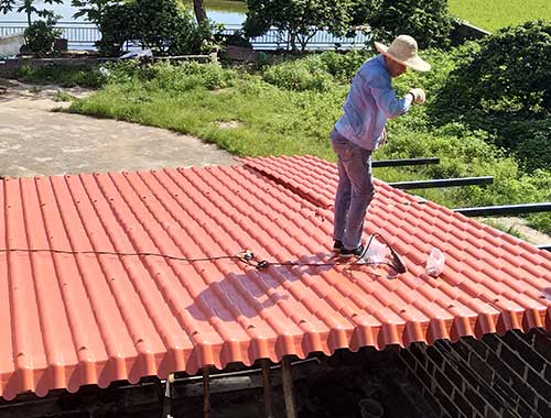 星發(fā)樹脂瓦經(jīng)過實(shí)驗(yàn)測(cè)試,長(zhǎng)期暴露紫外光線,濕氣,寒熱等惡劣條件下,仍然能保持其顏色的穩(wěn)定性,經(jīng)久不褪